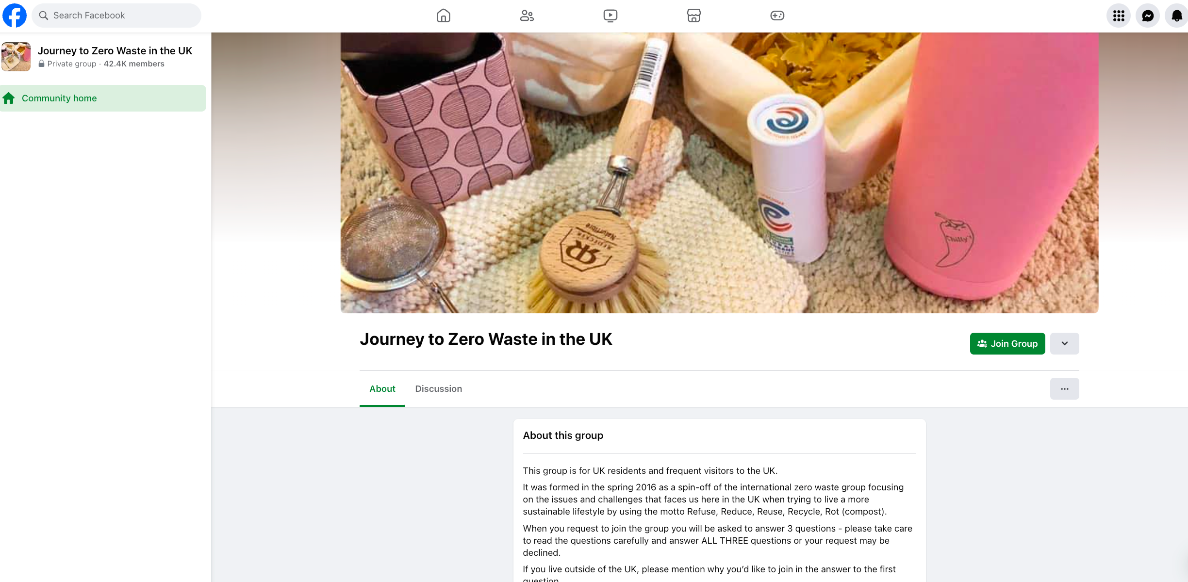 Journey to Zero Waste in the UK Group boasts over 42,400 members, making it a significant player in the niche. It’s a community where members exchange tips, experiences, and encouragement on their journey towards a zero-waste lifestyle. The group’s popularity highlights the growing interest in sustainable living practices.