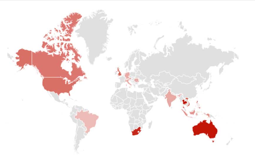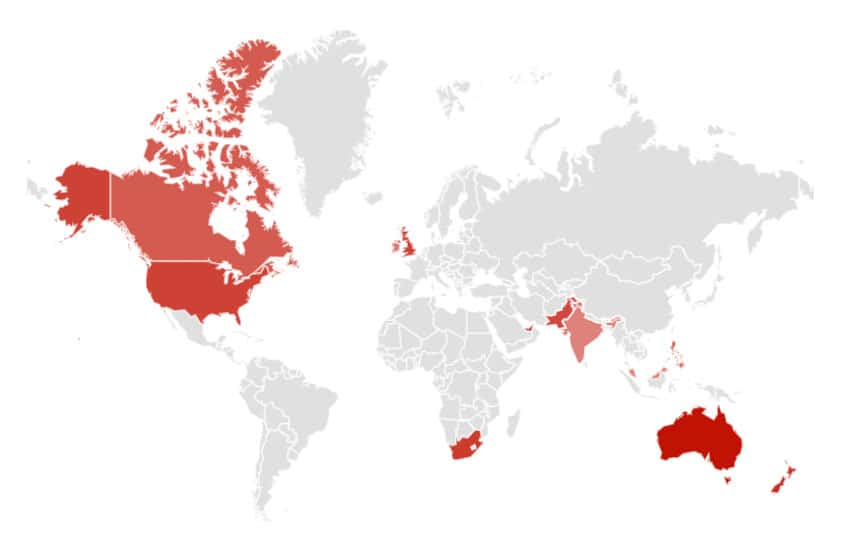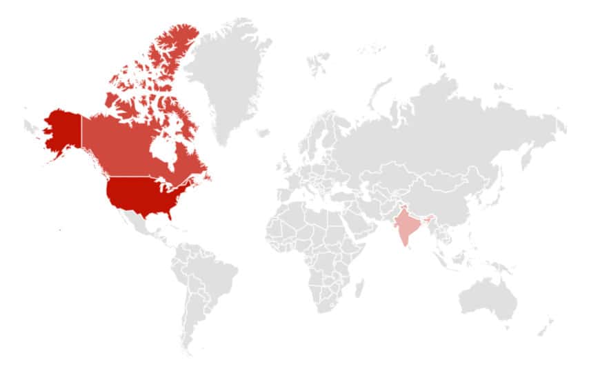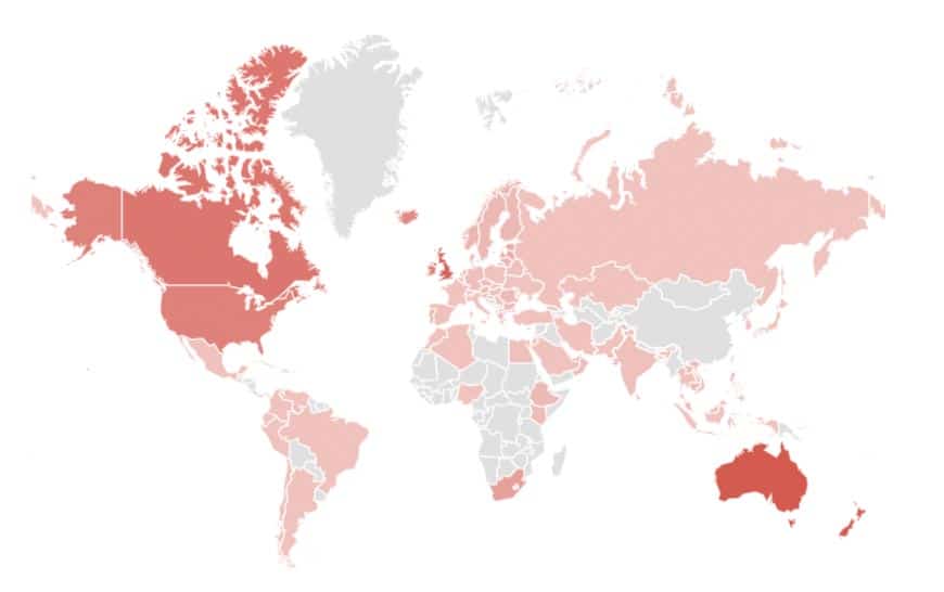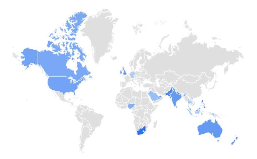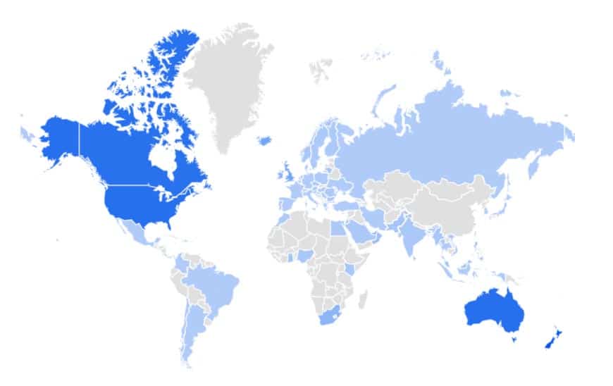 Interest by regions: