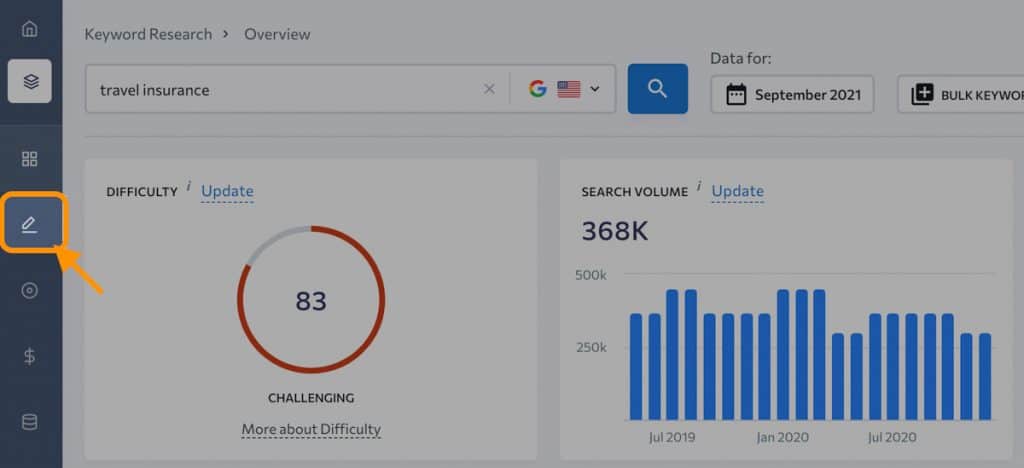 Step #2. In the panel on the left, click on the keyword suggestions icon.