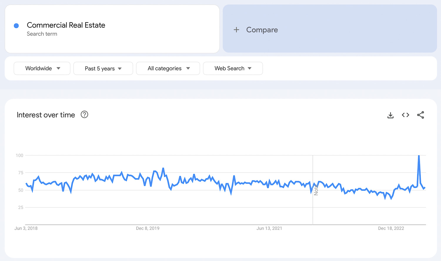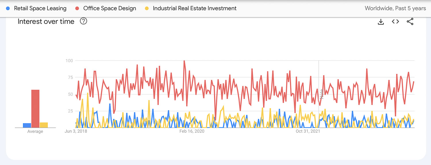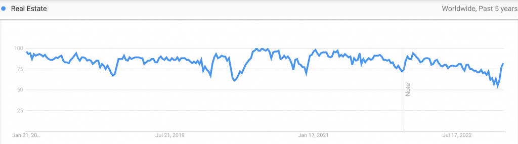 For this report, I am analyzing the topic ‘real estate.’ Then, I have set the location worldwide and filtered it by the past five years.
