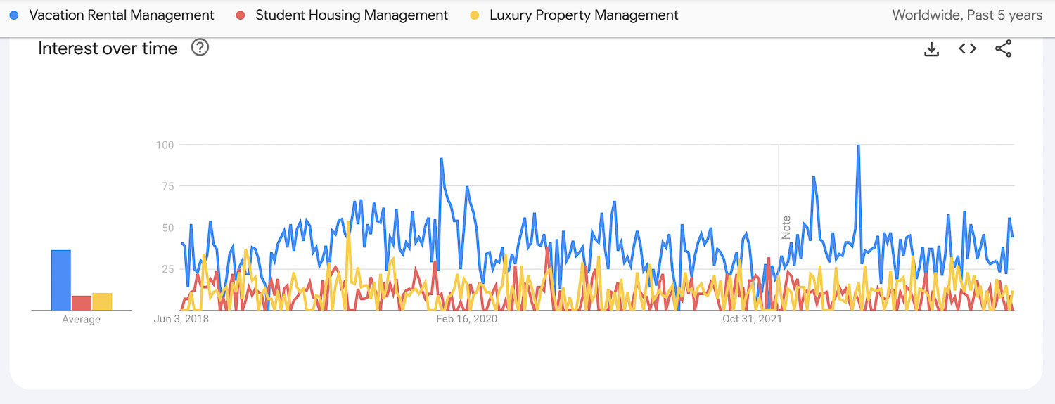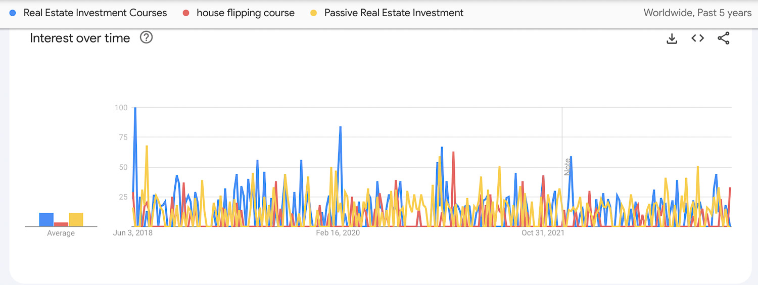 By looking at this graph, one could think that any real estate business could work based on the trend numbers. However, to avoid fierce competition in this niche, you should niche down and find sub-niche and micro-niche ideas.